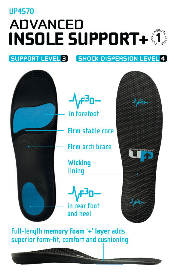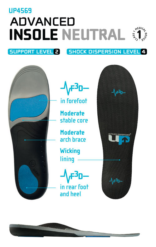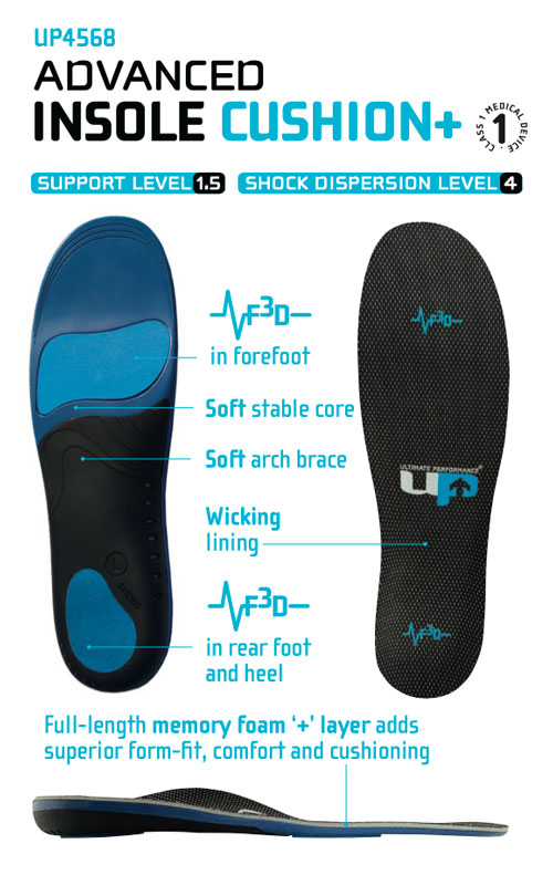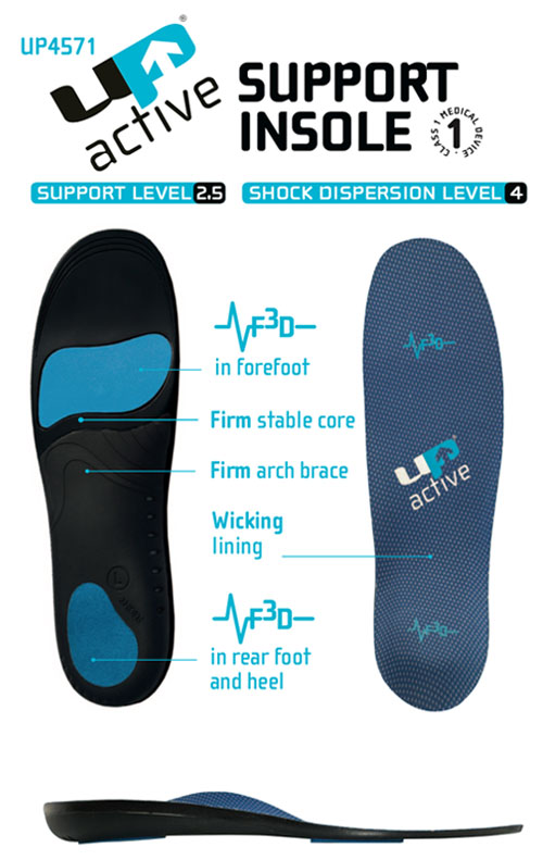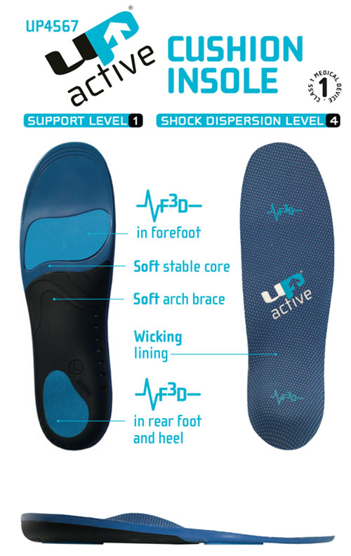 The full-length insoles are made from a unique mix of materials specifically engineered for running. Offering both biomechanical support and shock absorption, a cushioned arch support and an anatomical contour known as a ‘Met Pad’ help spread the load on the forefoot. Helping the body to achieve a more ideal gait, and damping harmful high-frequency shockwaves can help to reduce pain not only in your feet, but also in ankles, shins, knees, hips, back and neck. They will also help to aid recovery time and help to reduce the risk of injuries re-occurring.